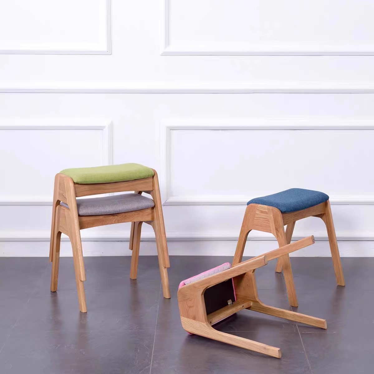 实木原木方凳子餐厅凳可叠放北欧化妆凳现代简约矮凳换鞋凳可拆洗