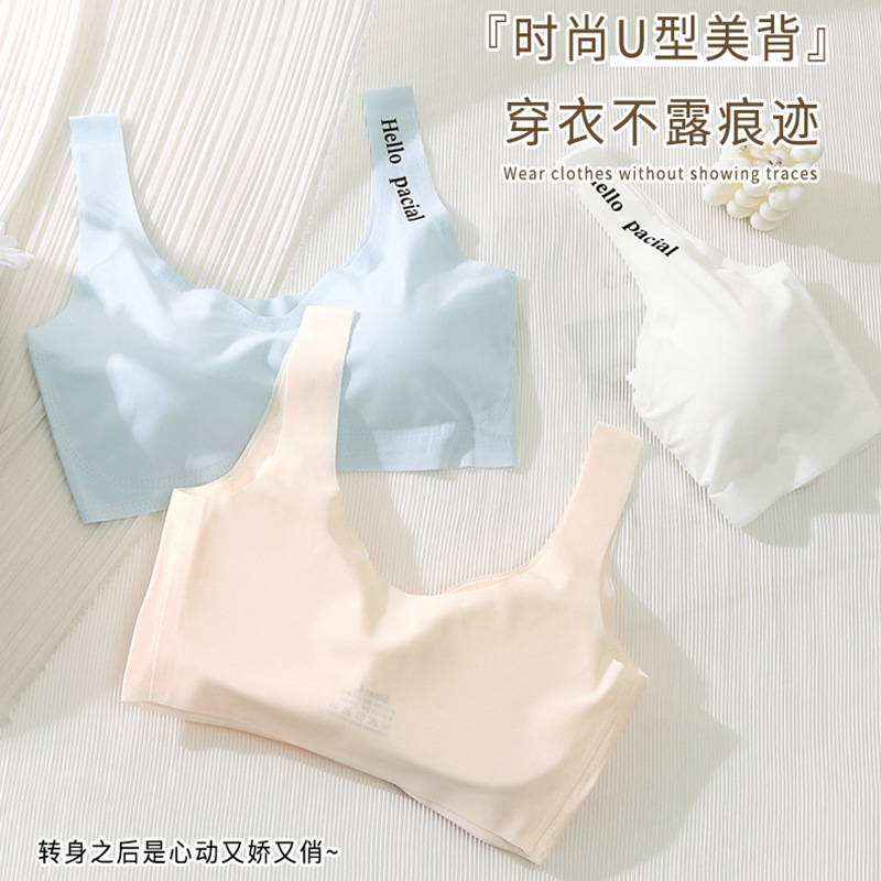 夏季新款英文字母冰丝无痕少女学生美背裹胸性感运动大U背心内衣