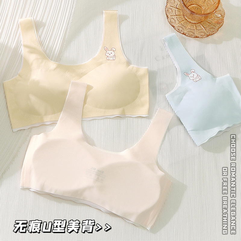 夏季新款少女学生冰丝无痕美背裹胸舒适轻薄运动大U背心抹胸内衣