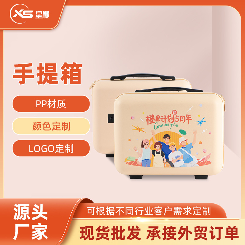 厂家现货pp手提化妆箱14寸迷你伴手礼箱印刷LOGO节日礼品手提箱子