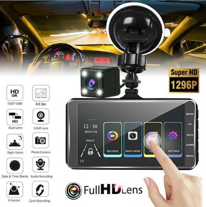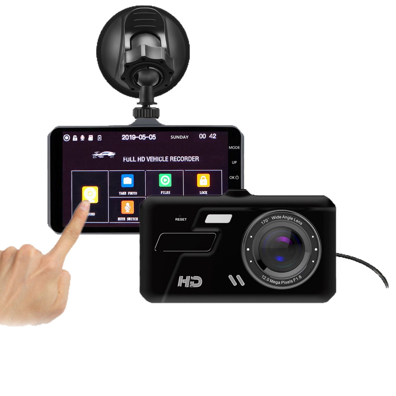 跨境新款行车记录仪高清夜视1080P双镜4寸触摸屏停车监控