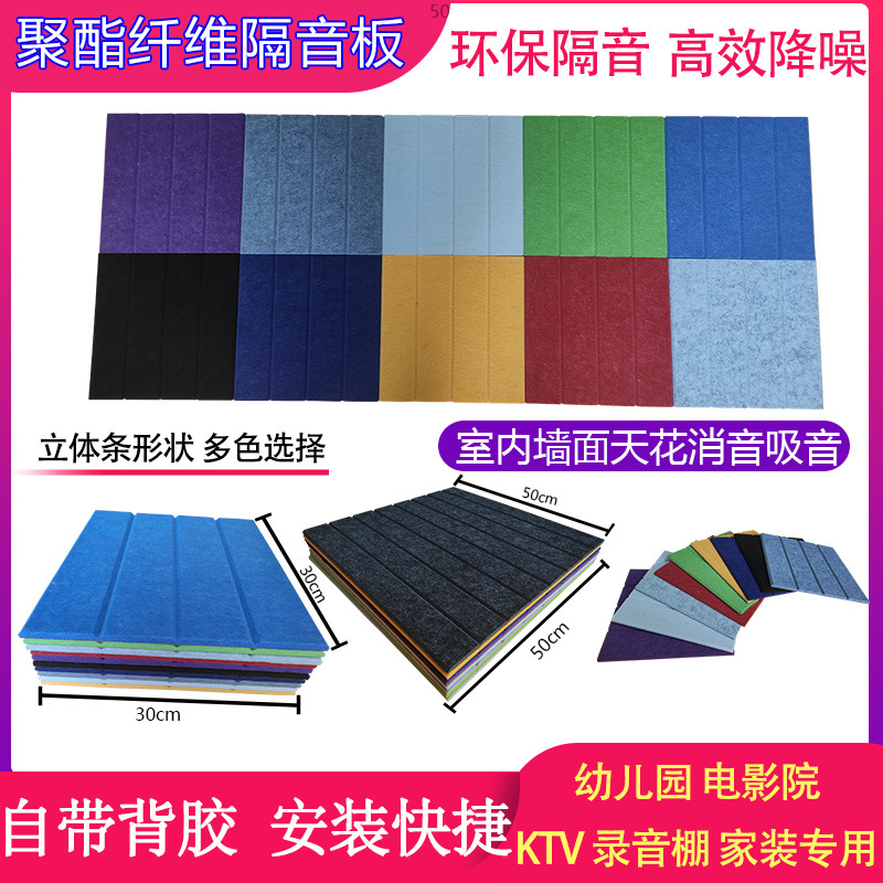 条形吸音板聚酯纤维隔音板自粘墙贴隔音棉家用墙体装饰消音板材料