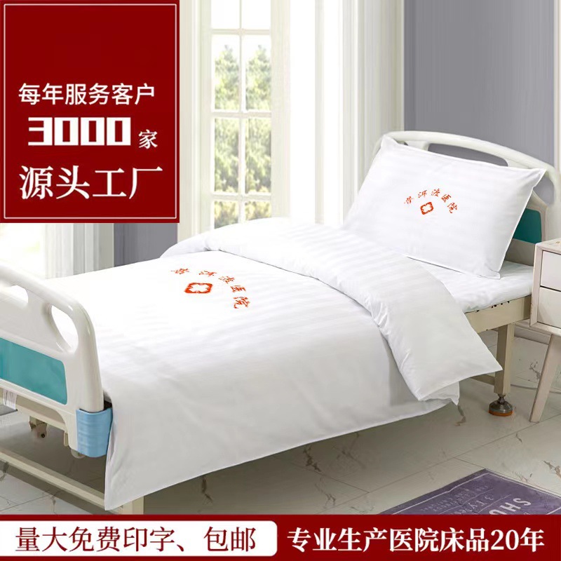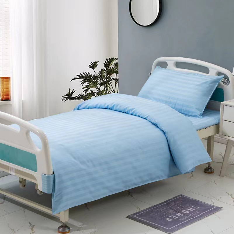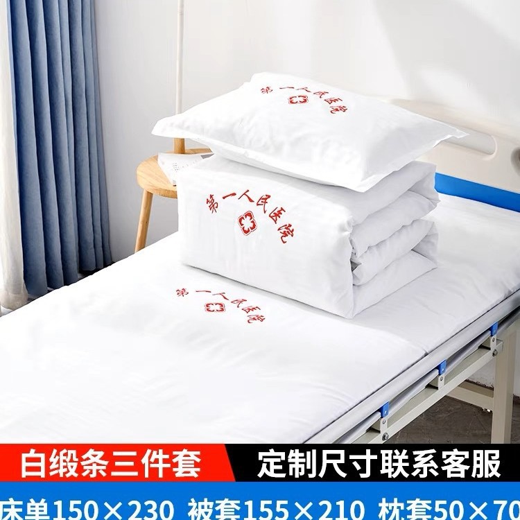 医院三件套六件套病房医用床单被罩床上用品养老院缎条条纹纯棉