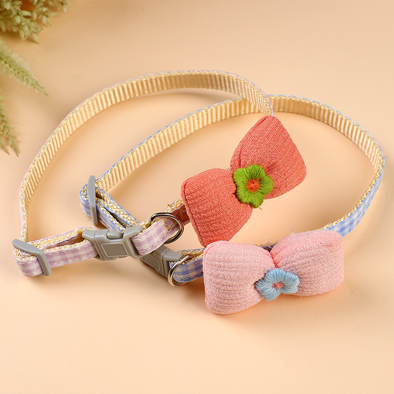 跨境外贸直销宠物项圈小清新蝴蝶结猫咪项圈可调节狗用品清新格子