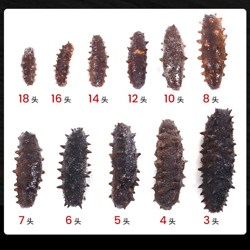 | 包装规格 | 独立包装16头/包(500g) | 包装规格 | 大连鲜冻辽参D3 |