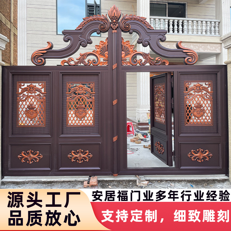 别墅庭院大门双开门铝艺大门护栏新中式铝合金入户大门别墅大门