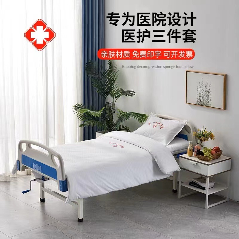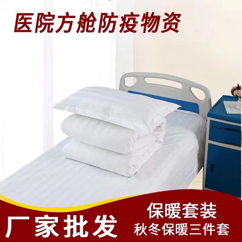 医院隔离酒店床上用品化纤三件套床单被套枕套被子枕芯褥条纹设计