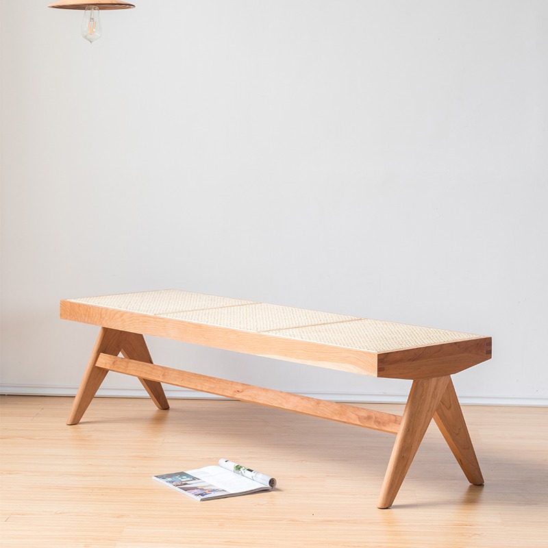 藤编长凳实木家用长凳餐椅北欧原木藤编白蜡木长板凳藤艺民宿凳子