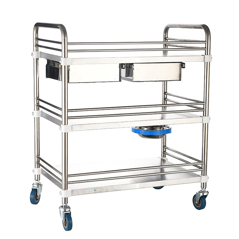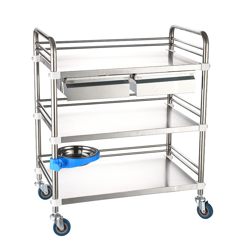 不锈钢推车三层双抽治疗车美容推车实验室器械工具车医院小手推车