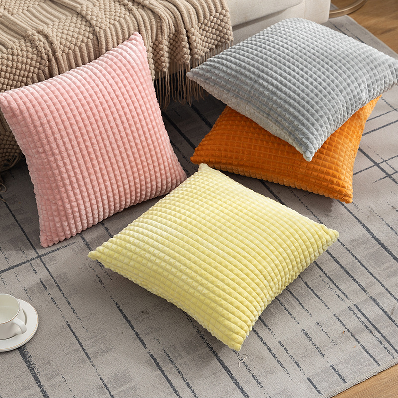 奶油风抱枕家居沙发靠垫ins简约纯色弹力泡芙格子抱枕套床头靠枕