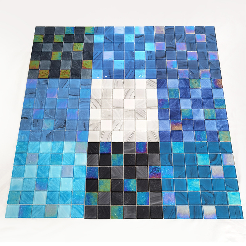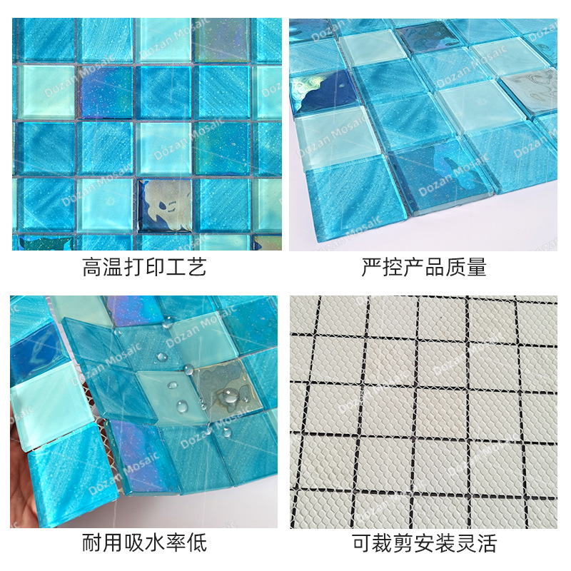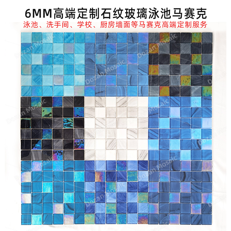 高端石纹玻璃泳池马赛克瓷砖定 制 厨房墙面酒店会所游泳池瓷砖