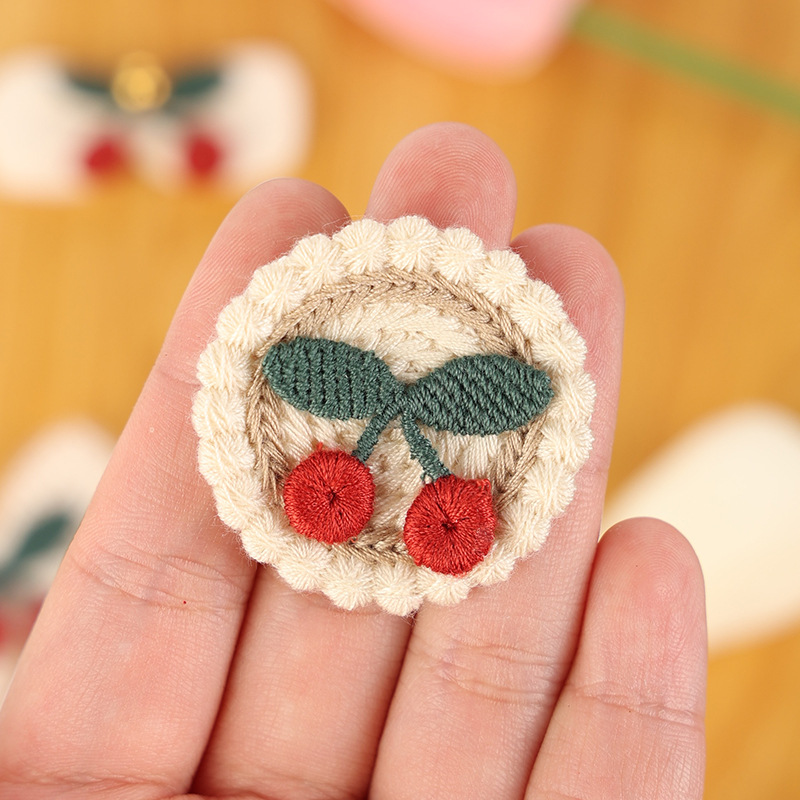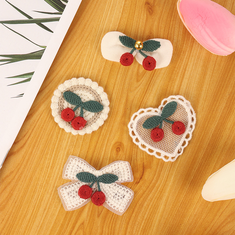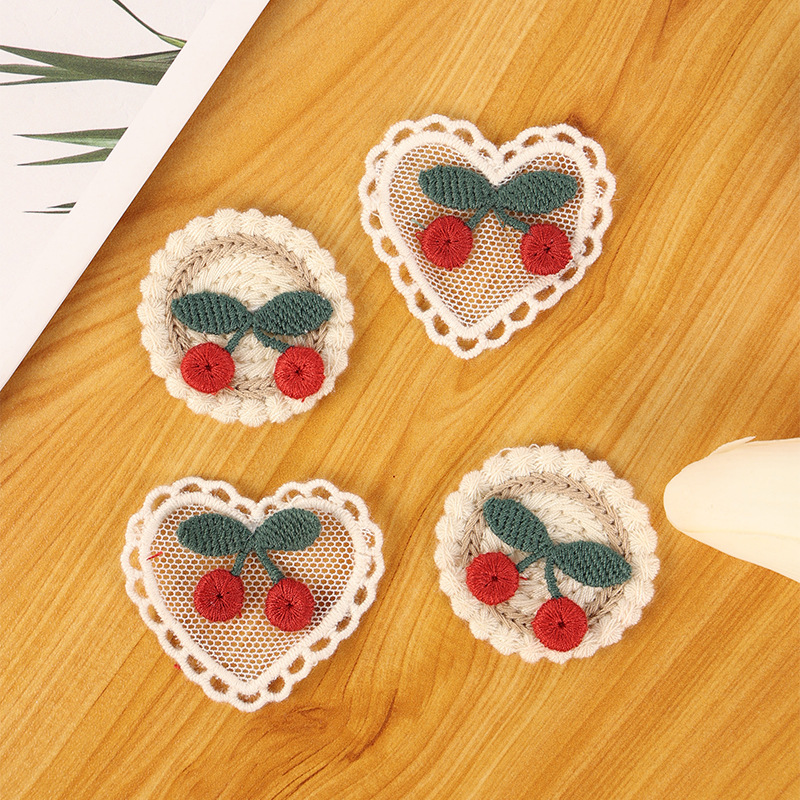 新款现货 韩版复古可爱樱桃爱心形针织饰品 手工DIY服装配件辅料