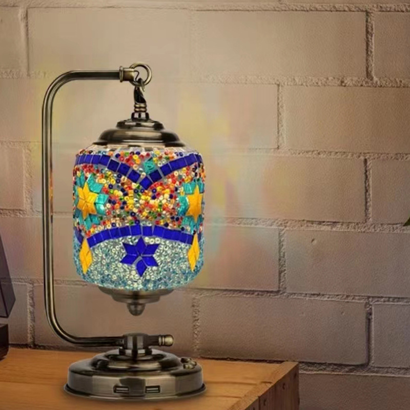 土耳其摩洛哥七彩马赛克蒂芙尼台灯7色玻璃手工办公桌床头小夜灯