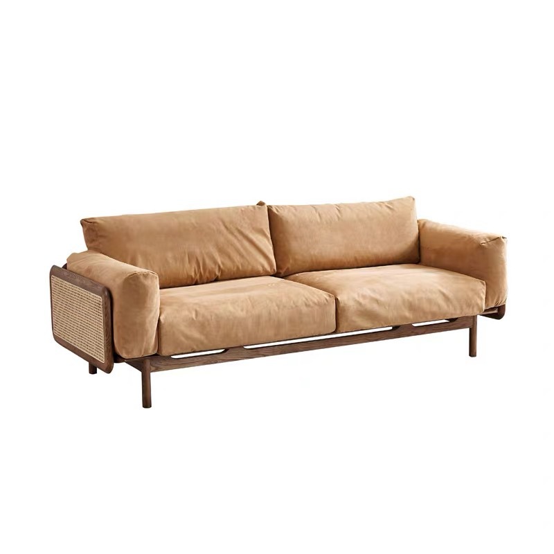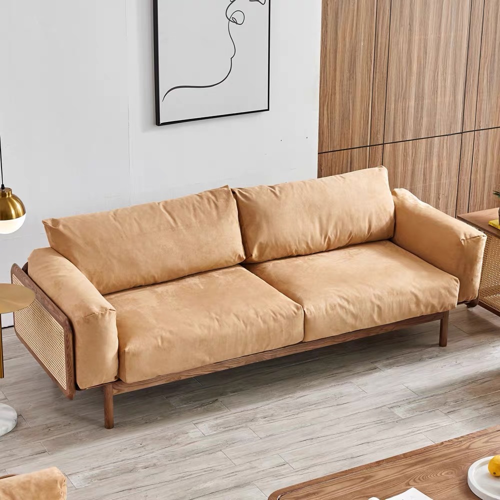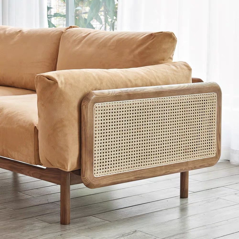 新中式实木沙发客厅组合简约布艺沙发北欧白蜡木藤编沙发椅子