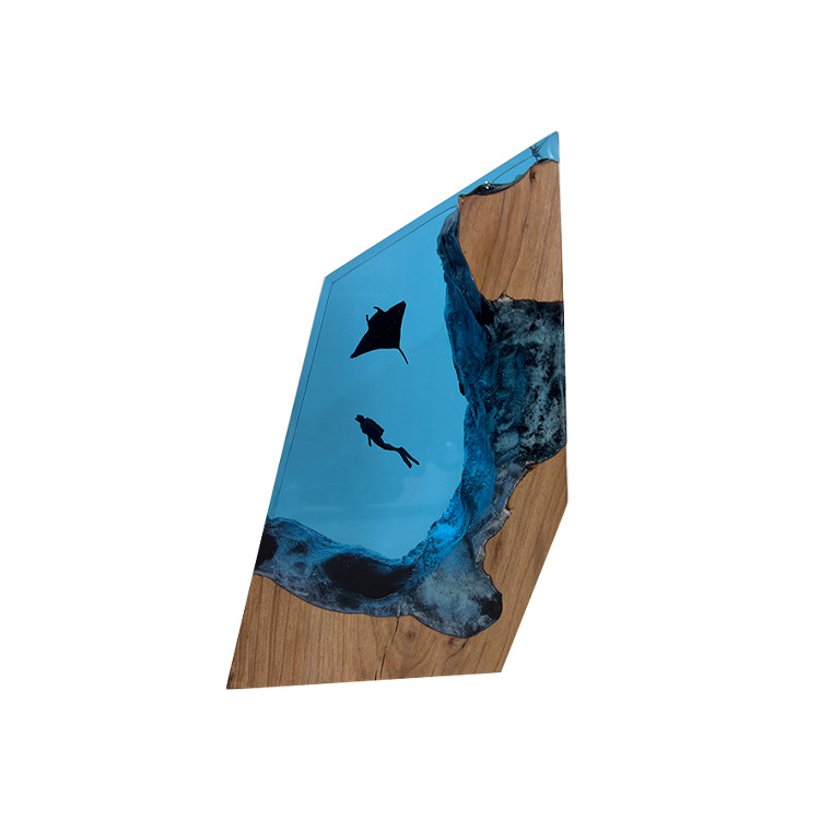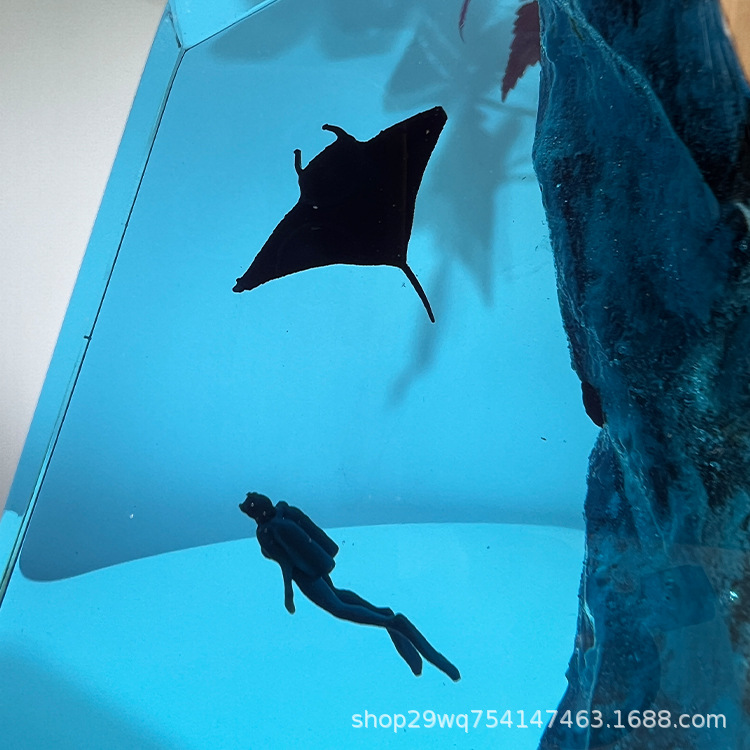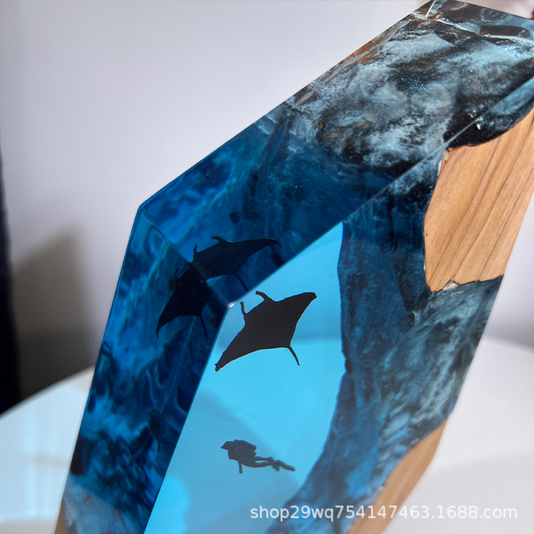 潜水员摆件溶洞鲸鱼桌面海洋树脂灯艺术工艺品实木生日礼物饰品