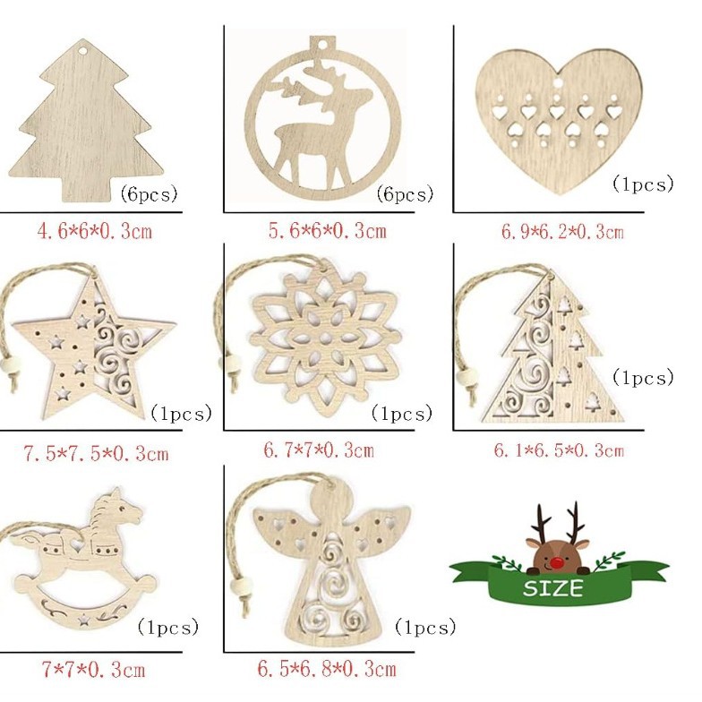 创意木质工艺品木片挂件圣诞节雪花摇马五角星天使爱心雪花装饰品