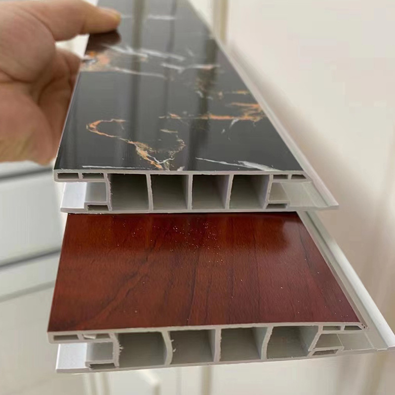 厂家定制双卡槽踢脚线板边框面板PVC塑料仿木纹大理石装饰踢脚线