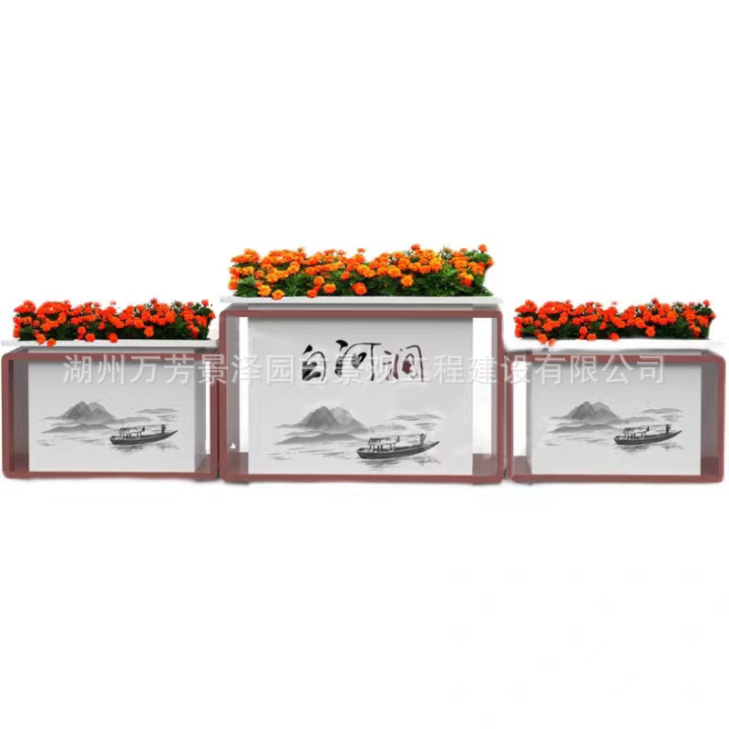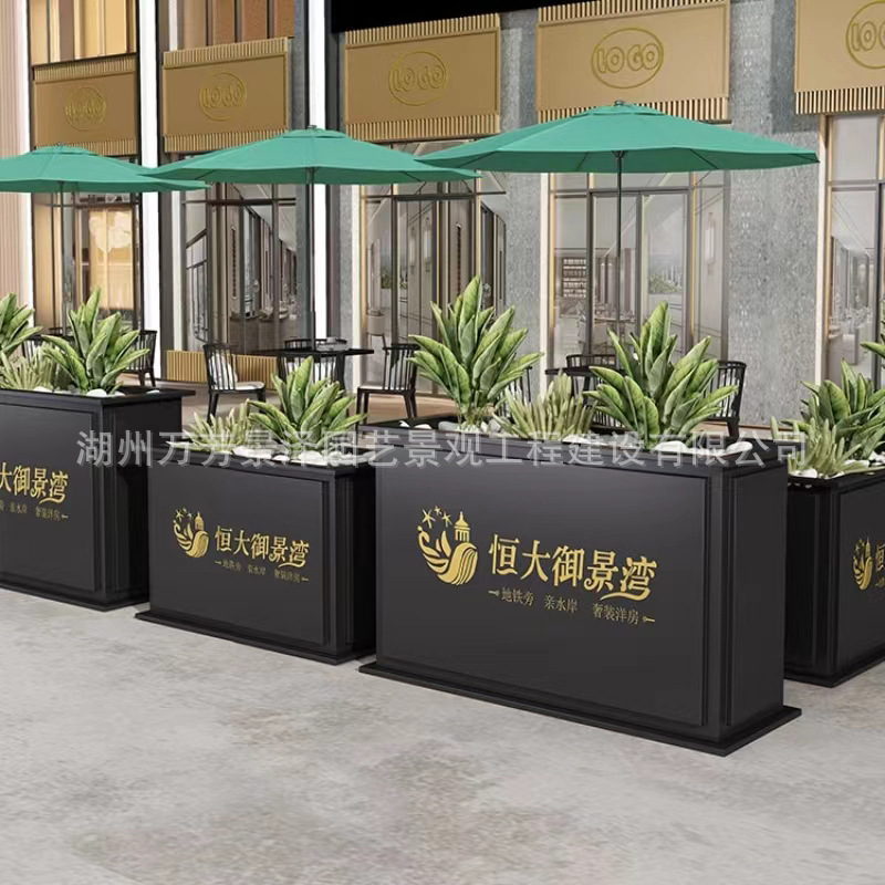 户外铁艺花箱围栏室外摆街道不锈钢花槽长方形花盆售楼部广场花坛
