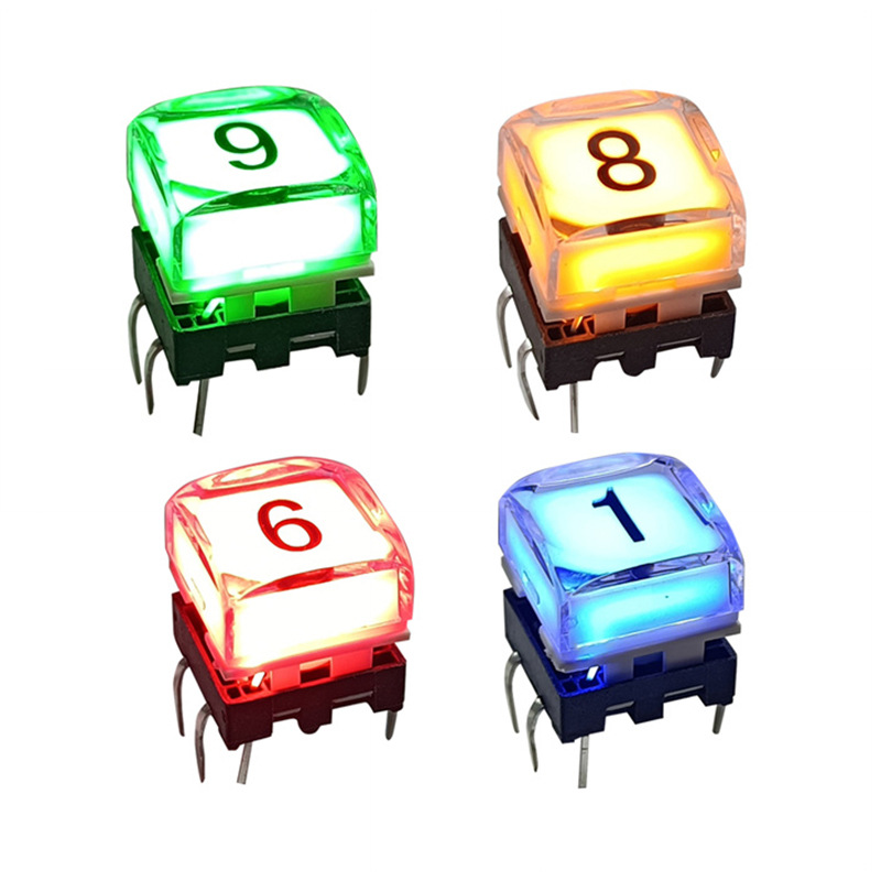 处理器带灯按键开关 LED水晶帽盖发光按钮 15x15带灯轻触开关