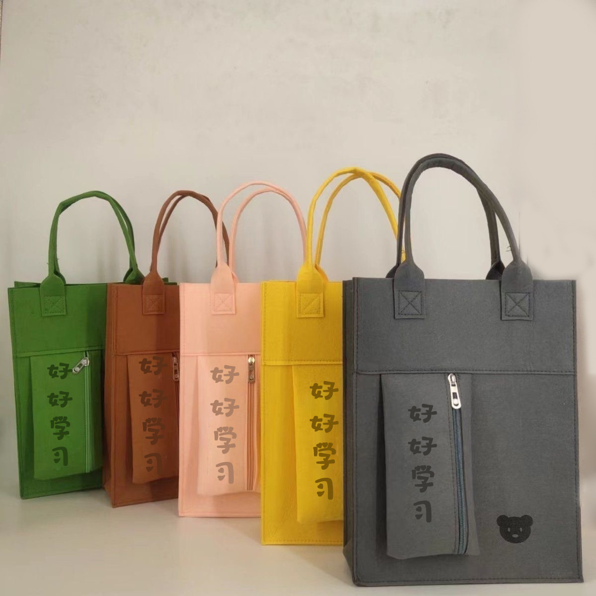 学生补课毛毡包大容量新款毛毡手提袋diy拉链美术包厂家现货批发