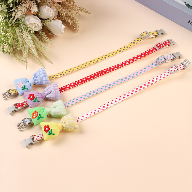 狗狗项圈猫铃铛项圈刺绣蝴蝶结猫圈可爱脖圈项链宠物饰品