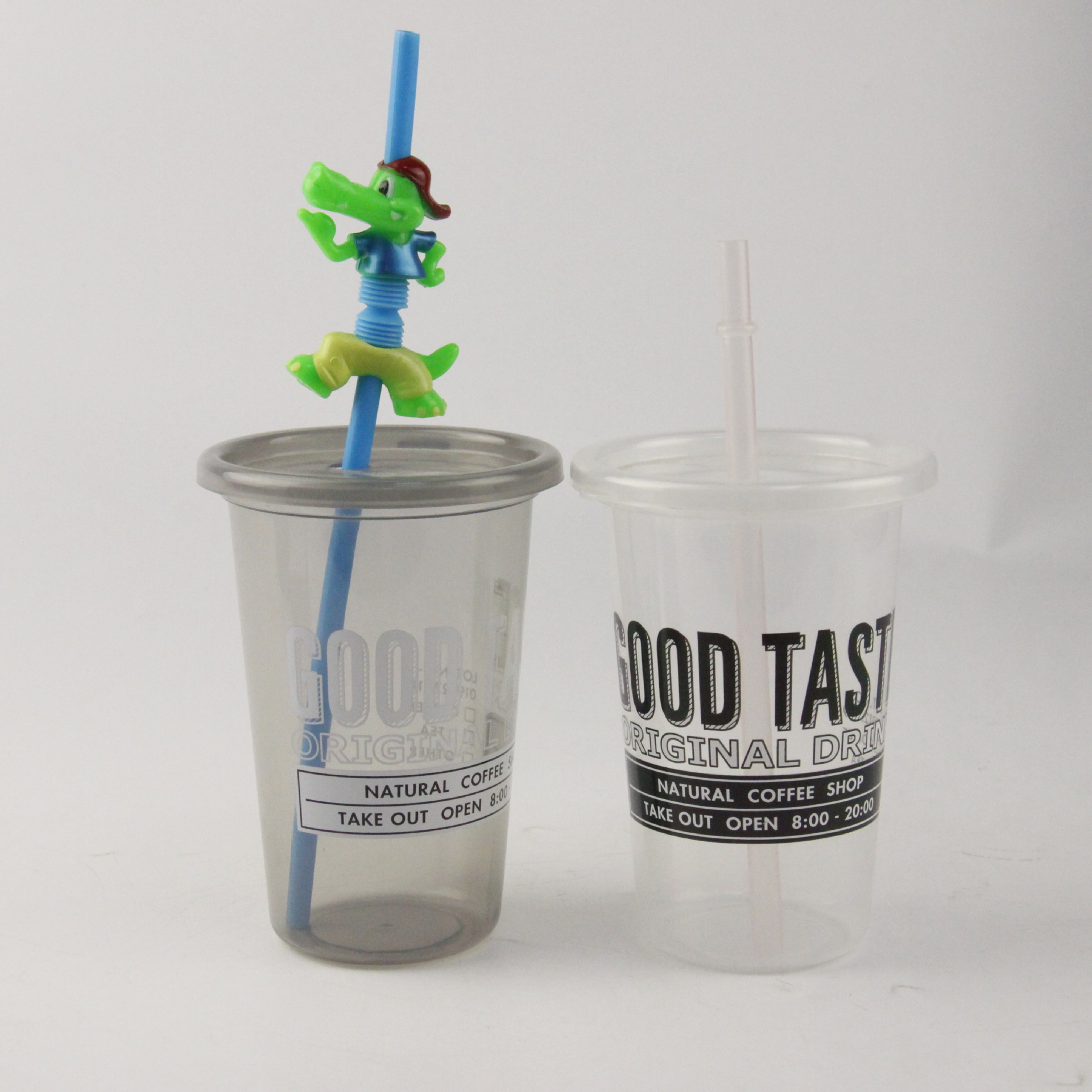 创意卡通塑料儿童吸管杯透明简约材质果汁饮料杯冷饮杯奶茶杯