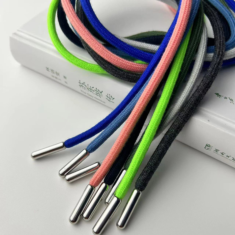 现货批发运动裤金属头收口头涤棉圆绳卫衣抽绳加密包芯圆绳鞋带绳