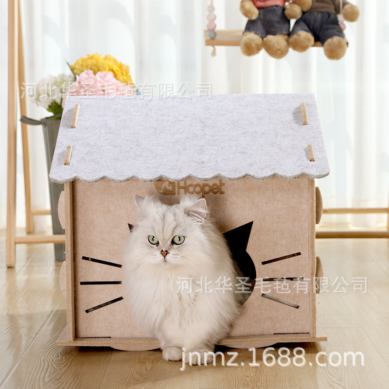 BSCI工厂现货毛毡猫窝四季通用别墅猫窝狗窝半封闭式可清洗宠物窝