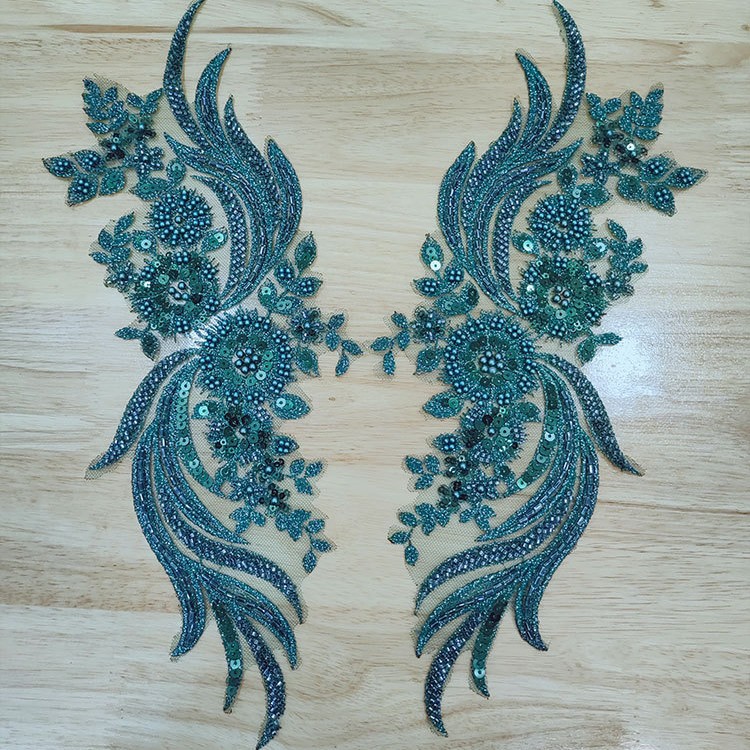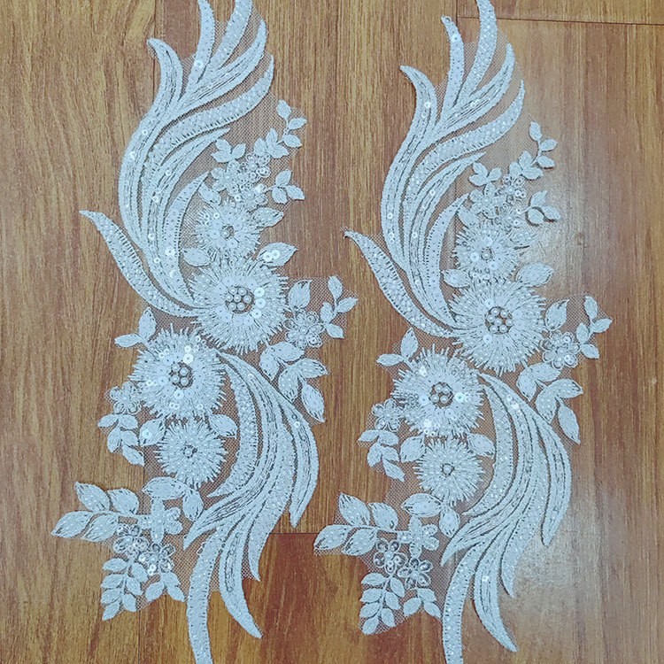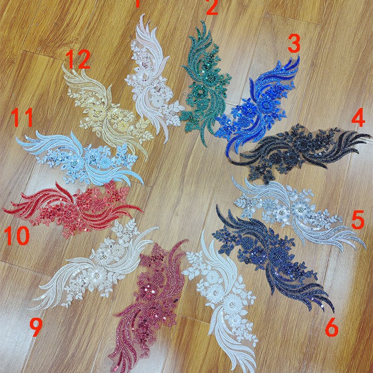多色钉珠蕾丝布料贴花婚纱礼服网纱面料花边装饰DIY服装辅料对花