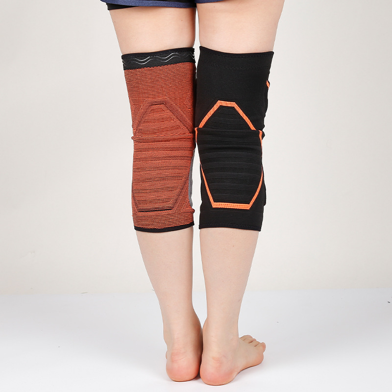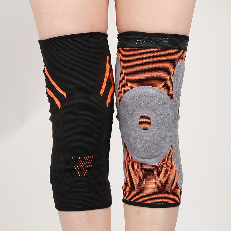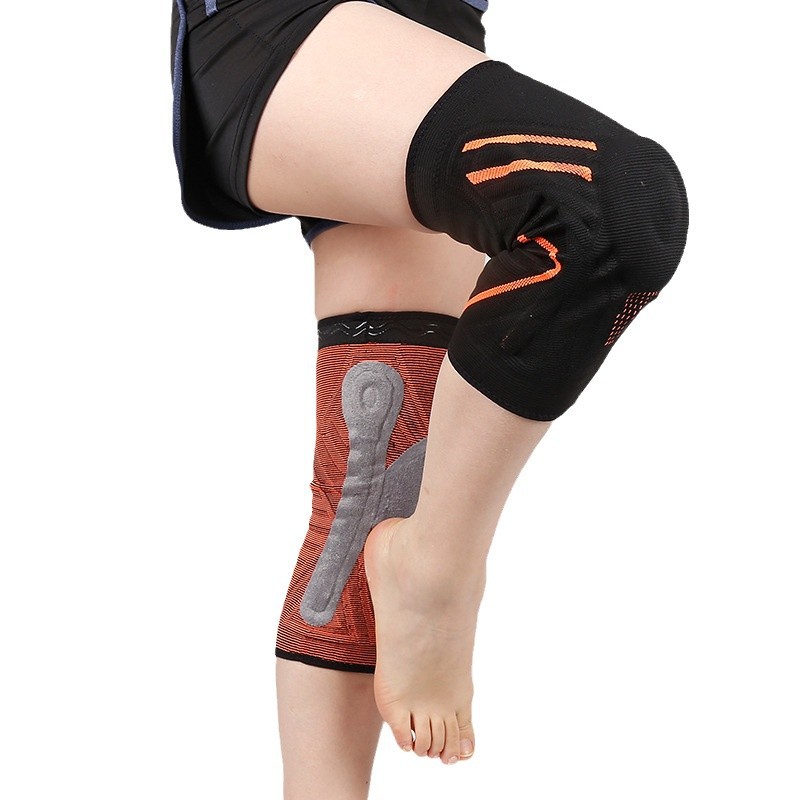 批发硅胶护膝针织运动护膝 尼龙弹簧加压护膝篮球护膝减震跳跃