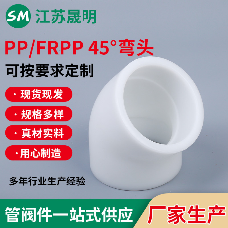 定制pp弯头聚丙烯热熔承插45度frpp弯管塑料水管接头工业管道配件