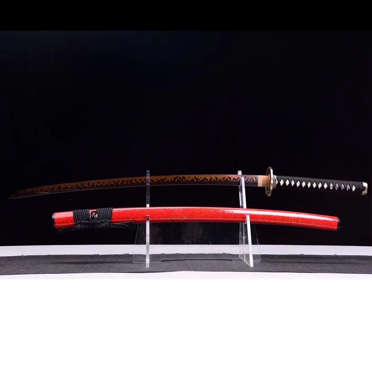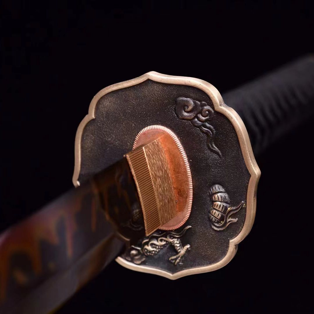 龙泉市刀剑T10钢手工锻打日式打刀覆土烧刃火焰纹影视宝剑未开刃