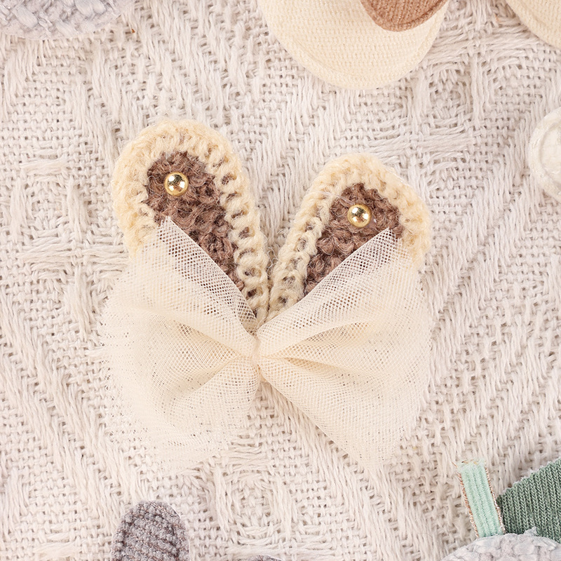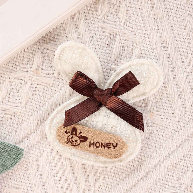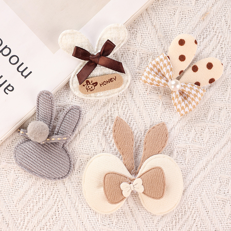 秋冬新款 奶咖色毛绒可爱百搭兔耳布贴 发卡配饰服装饰品装饰辅料