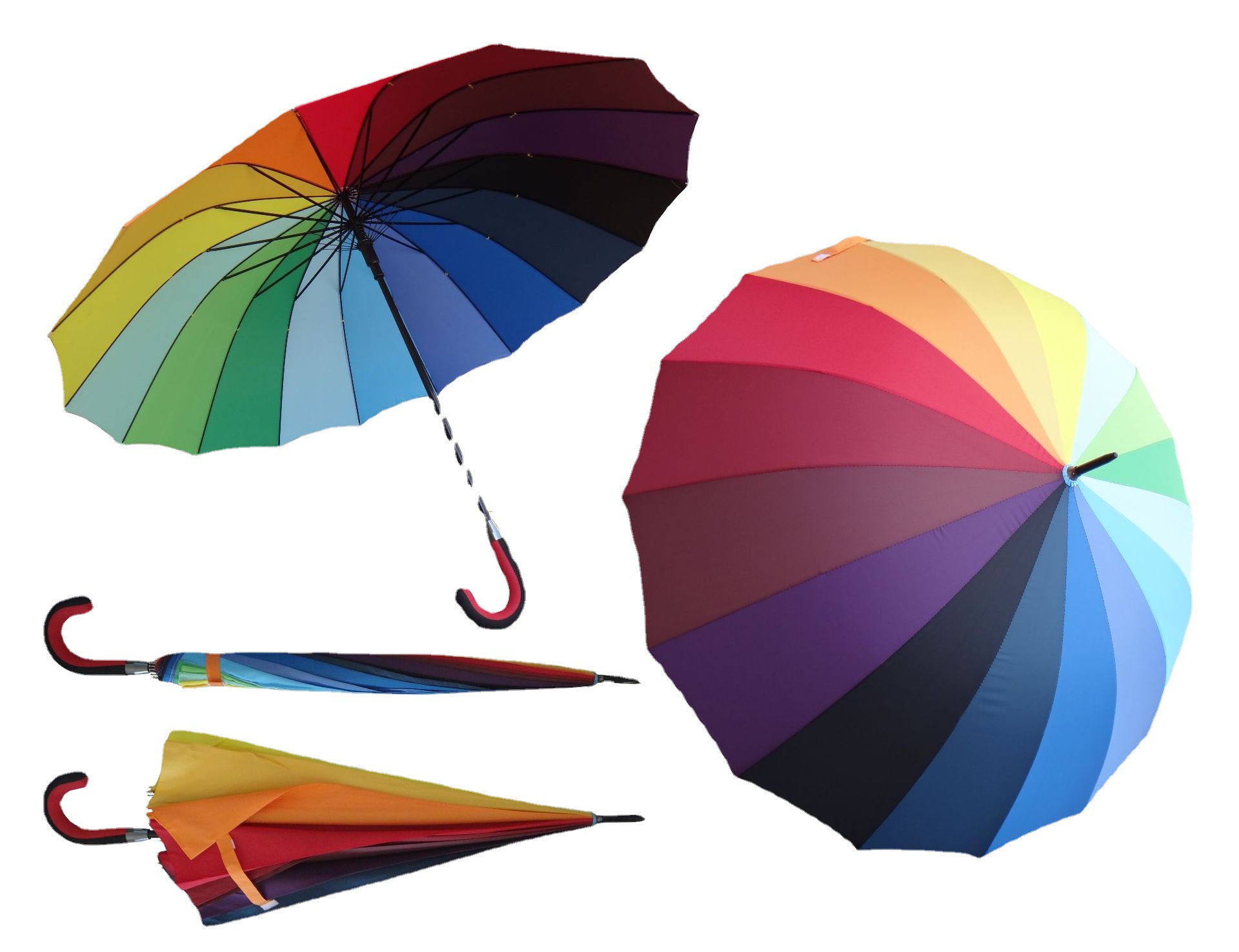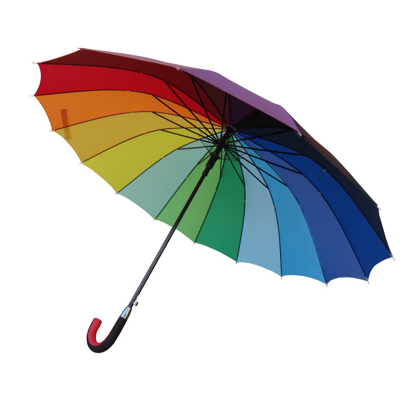 16骨彩虹伞长柄直杆超大伞男女通用创意自动彩虹伞广告伞长柄雨伞