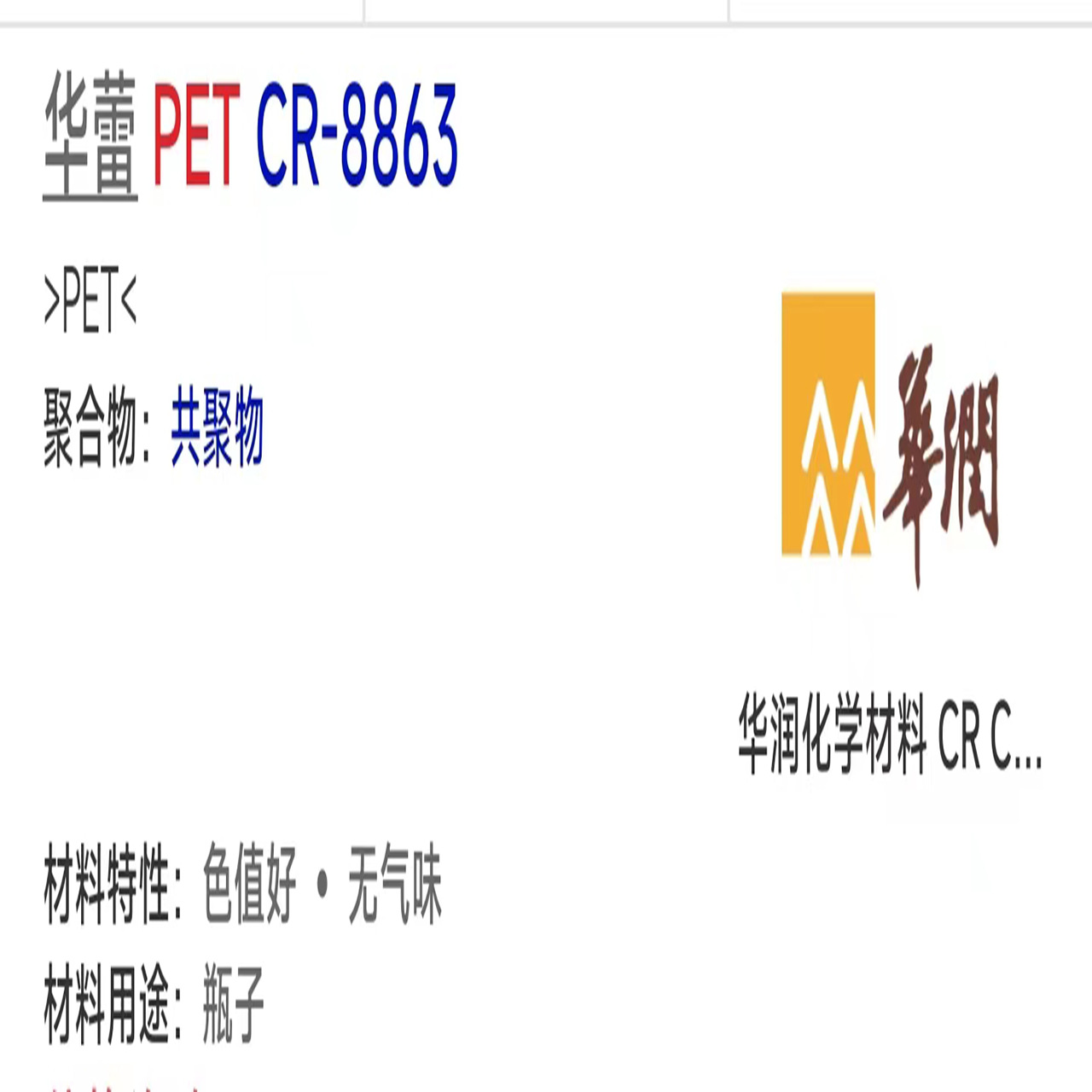 品名PET 常州华润 CR-8863 食品级