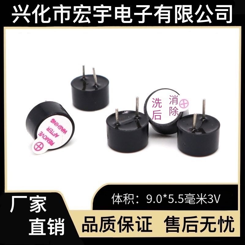 9*5.5MM有源3V蜂鸣器HU-09055YT03电磁式低功耗环保交流-TMB09A03
