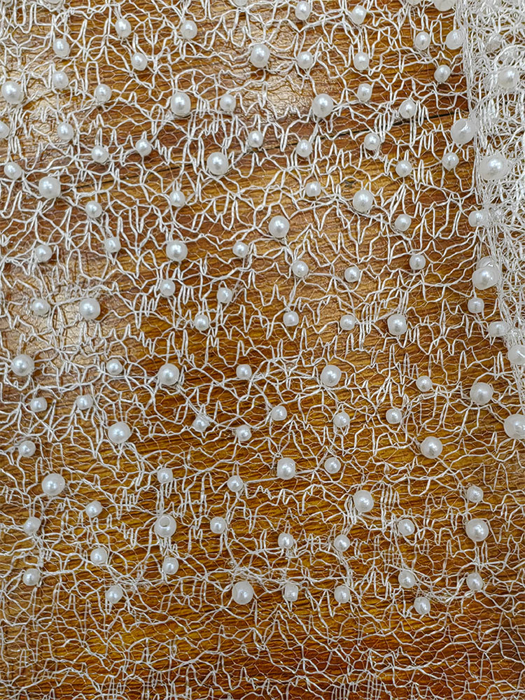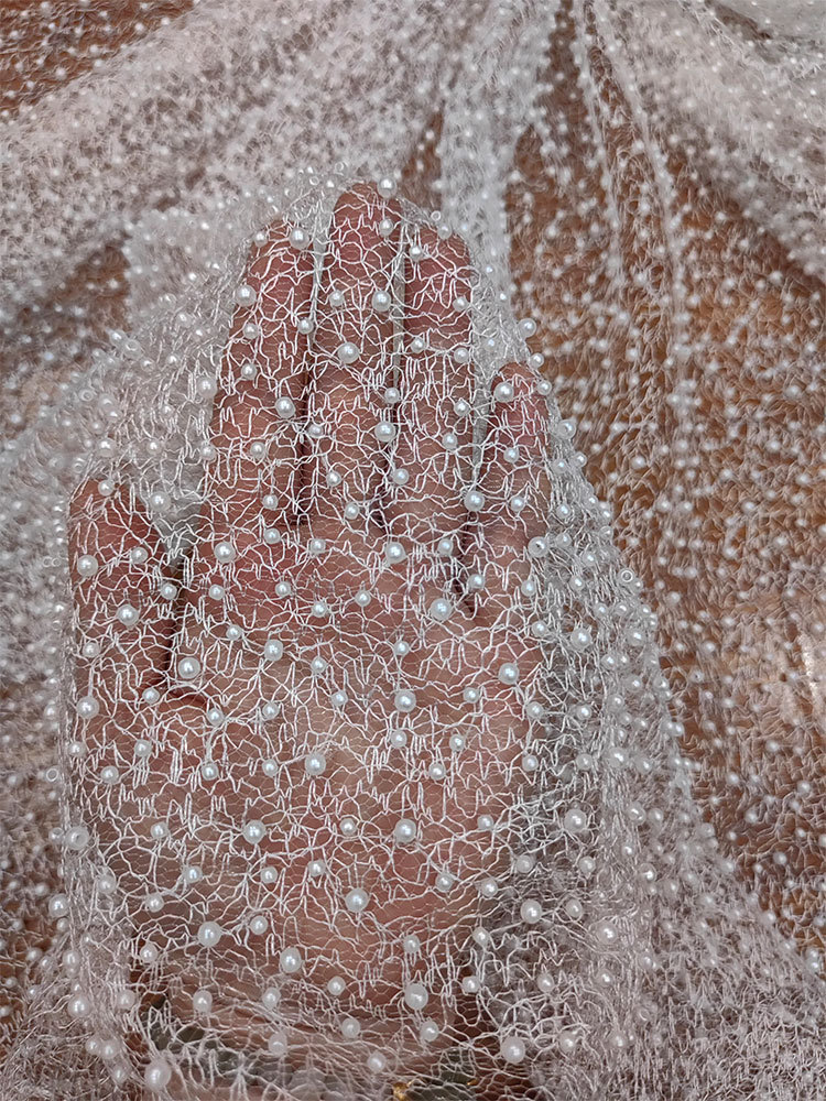 新款高品质钉珠镂空白色珍珠蕾丝网纱婚纱女礼服DIY花边服装辅料