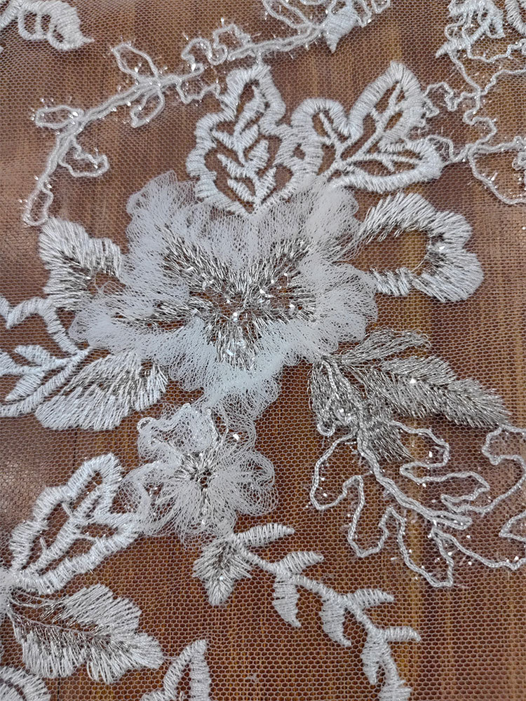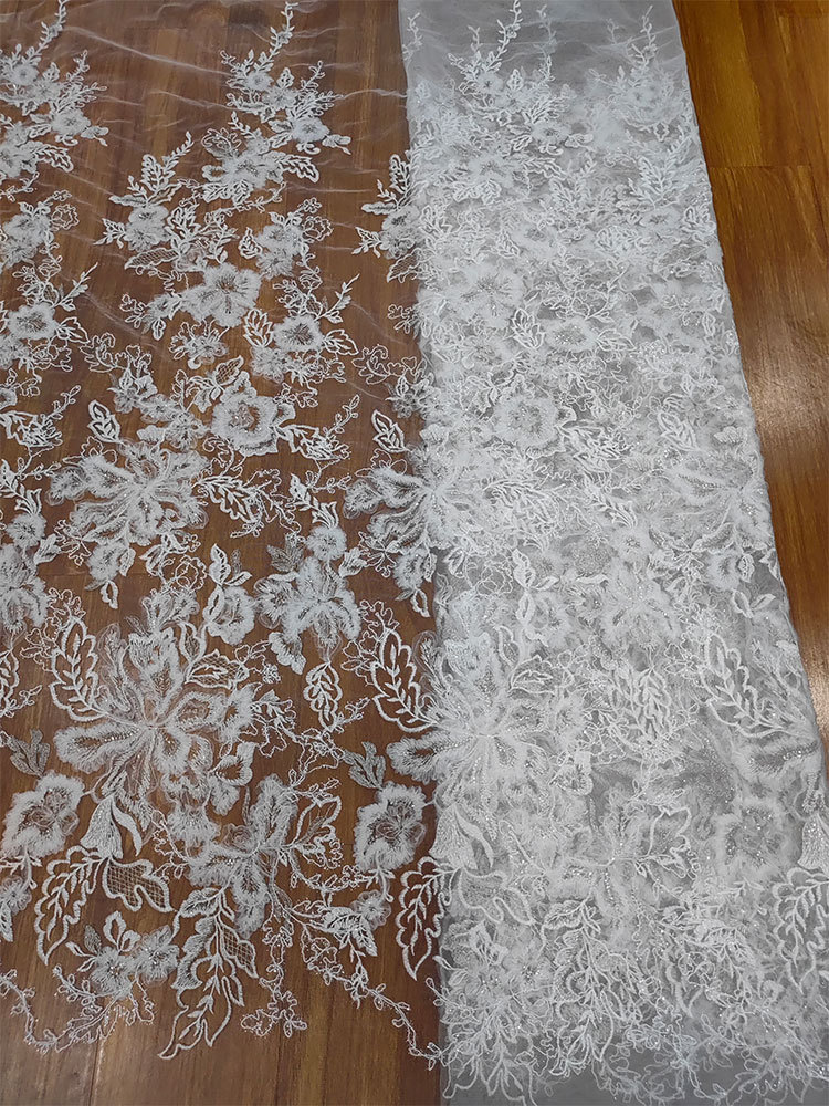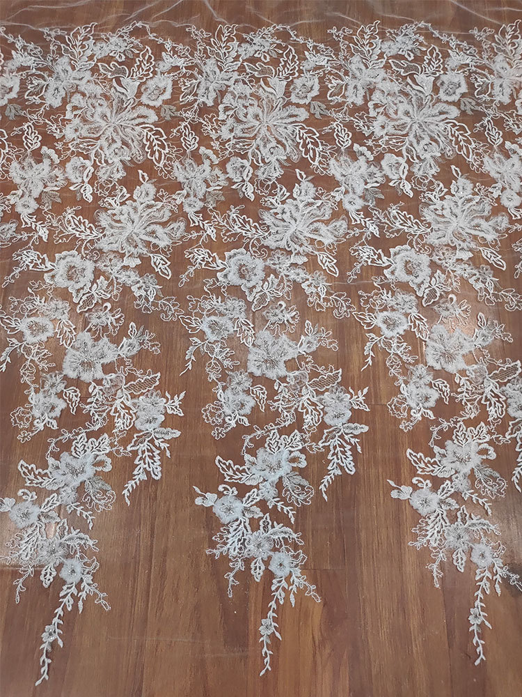 工厂直销高品质花朵刺绣亮片钉珠蕾丝网纱面料婚纱晚礼服服装辅料
