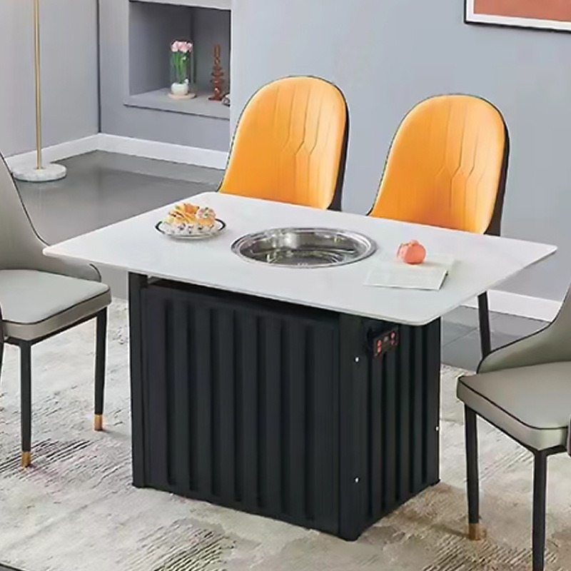 商用电磁炉岩板烤涮一体桌火锅店火锅桌椅卡座岩板餐桌火锅桌椅