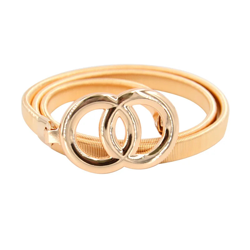 欧美金属弹力松紧腰带女细装饰百搭双圆环腰链连衣裙配饰皮带
