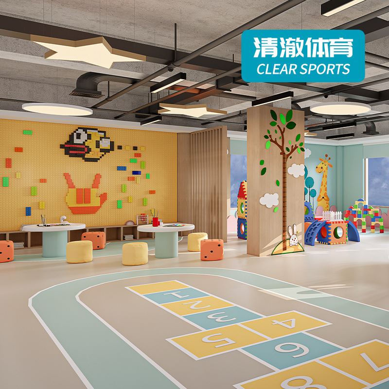 健身房地胶360私教工作室定制多功能健身图案地板少儿体适能地胶
