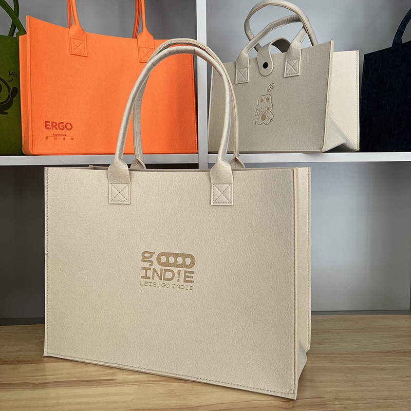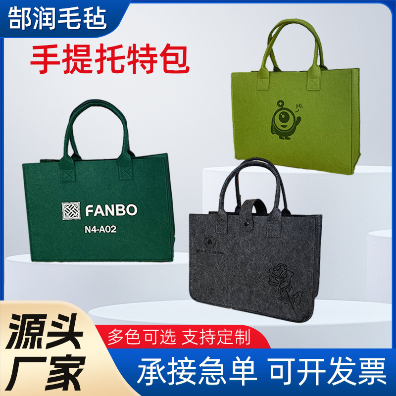 批发供应大容量手提托特包便携购物袋网红时尚简约毛毡包可印logo
