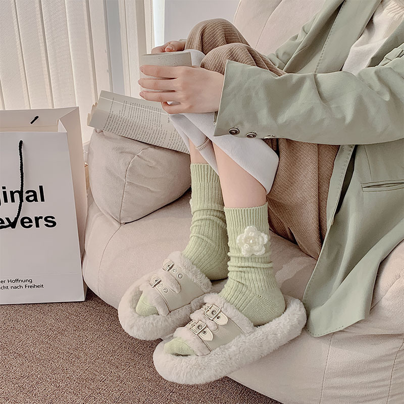 袜子女中筒袜秋冬日系ins潮韩国网红立体小花外穿甜美加厚羊毛袜