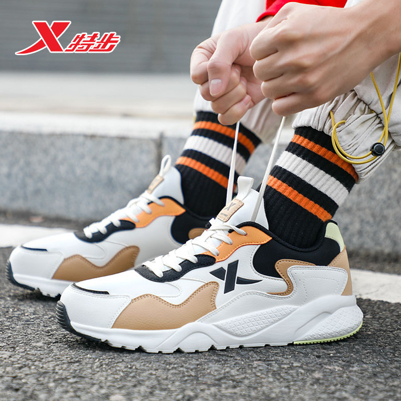 特步运动鞋男鞋2025秋冬季跑步鞋男士休闲鞋皮面复古潮流运动鞋男