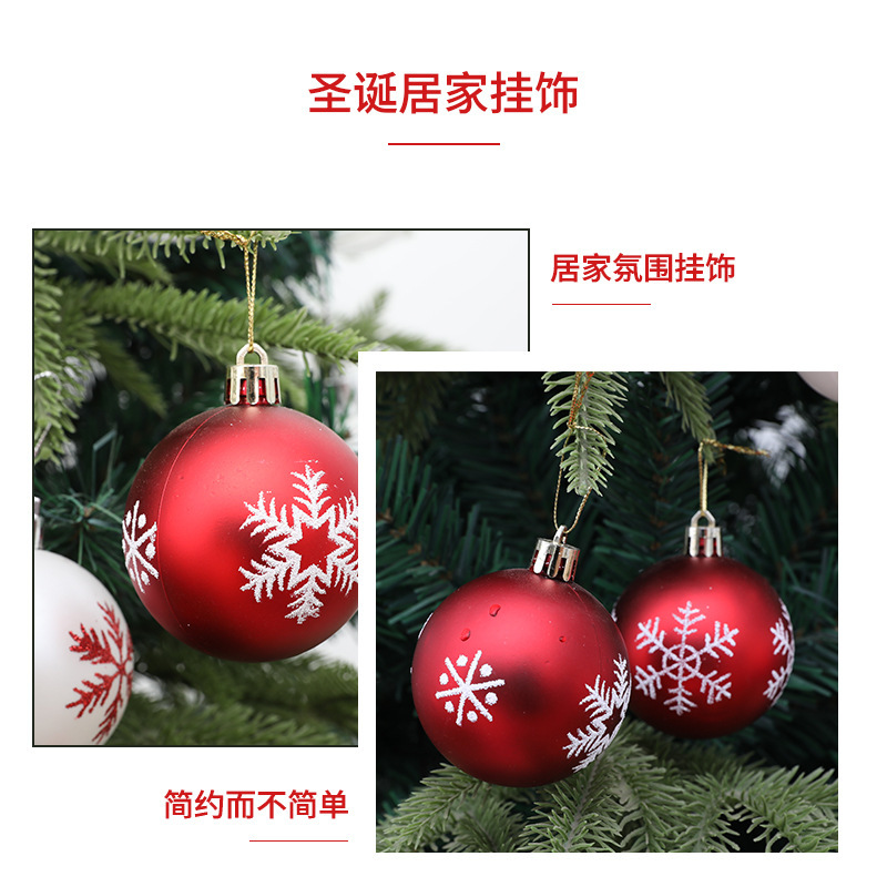 跨境圣诞装饰品圣诞树装饰6cm雪花彩绘圣诞球12PCS塑料桶装球挂件