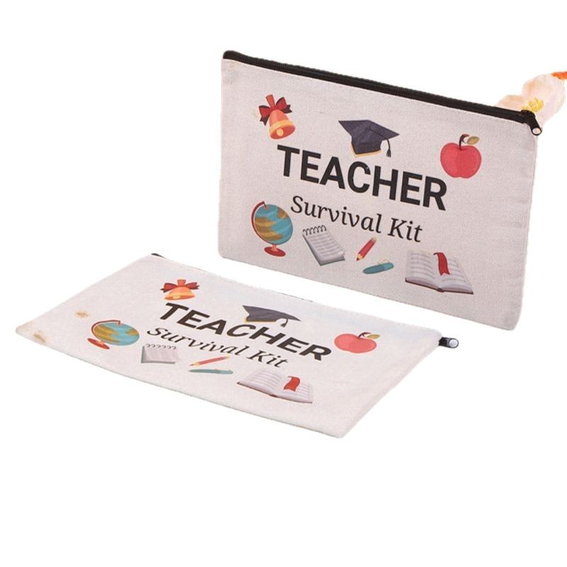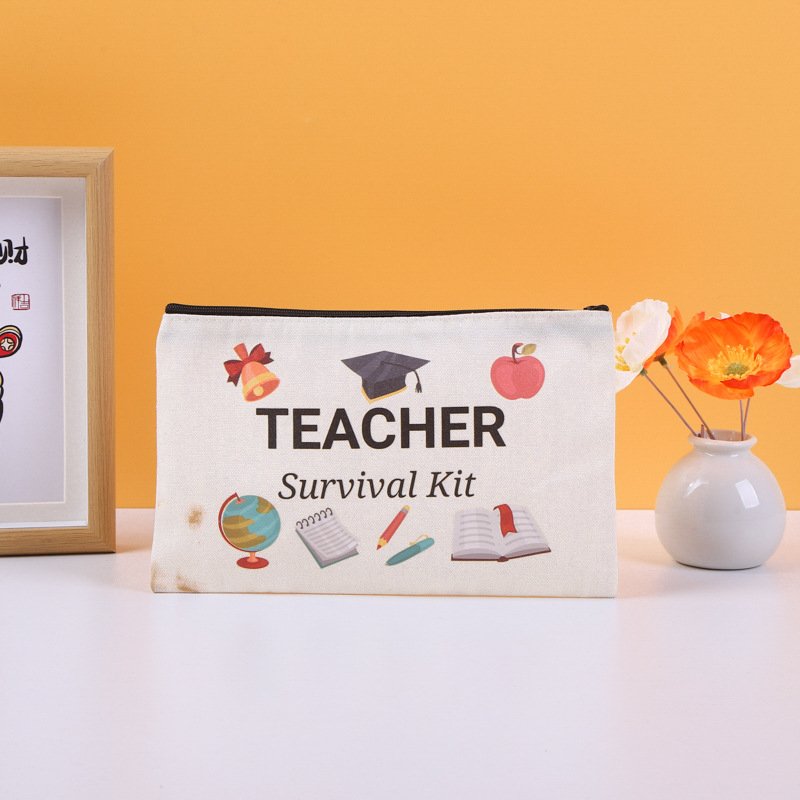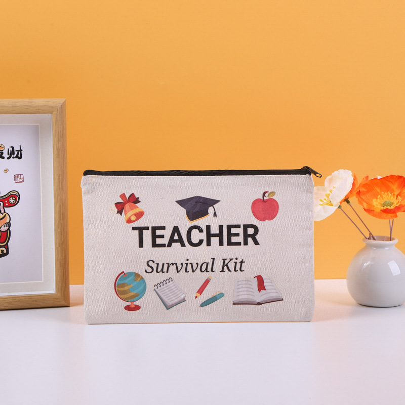 彩印帆布笔袋亚马逊跨境手提拉链帆布笔袋棉布袋学生女士化 妆品