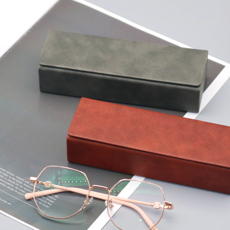 批发复古皮质墨镜盒高级感眼镜收纳盒抗压便捷自动闭合便携眼镜盒