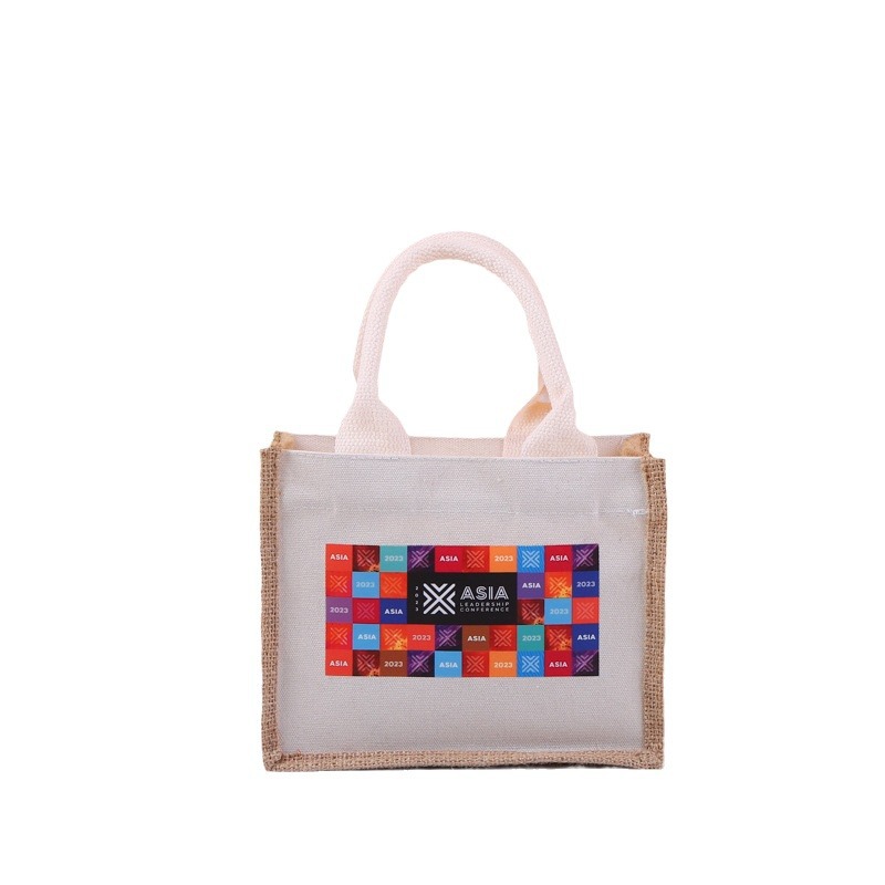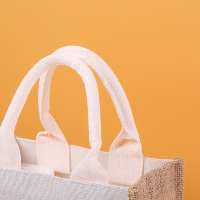 麻布袋定 制仿麻布拼接手提袋定 做手绘粗黄麻袋复古防水覆膜袋