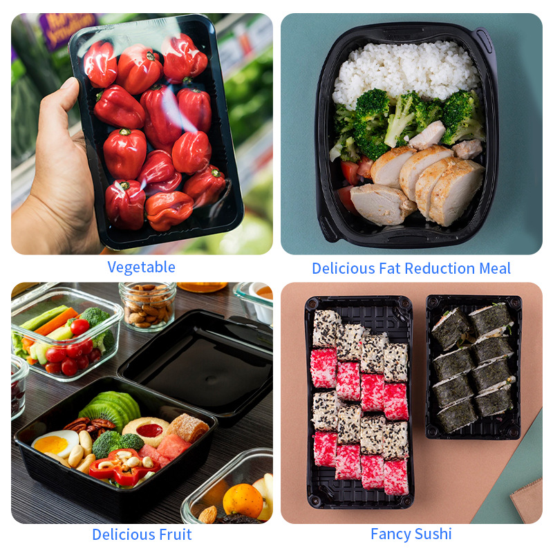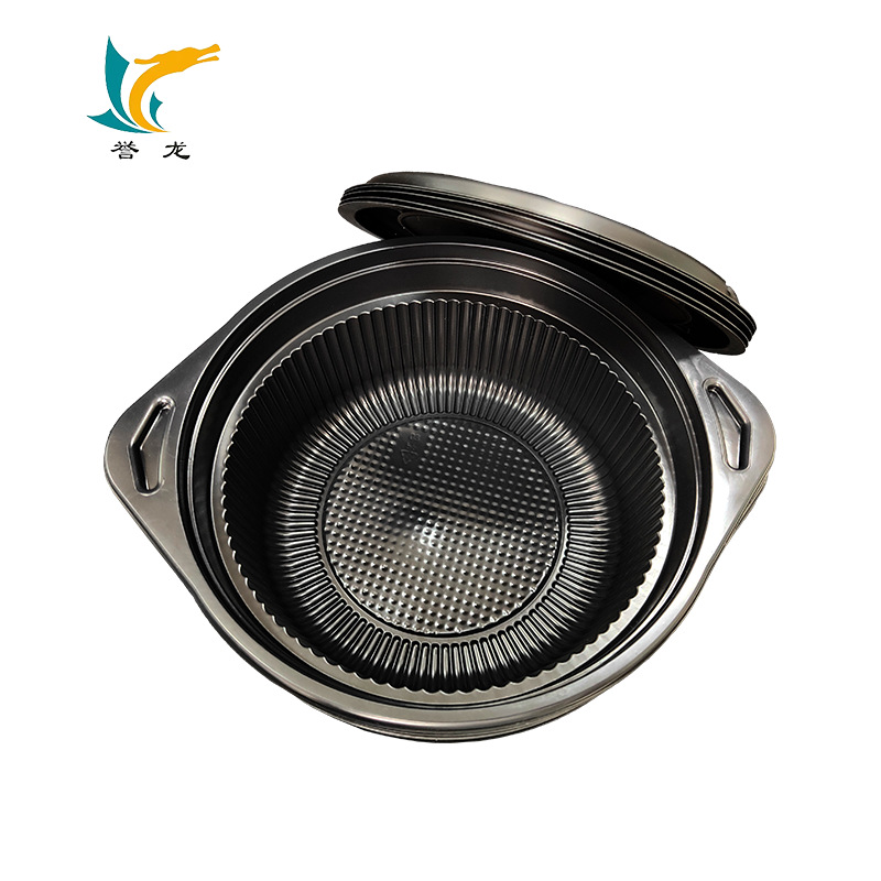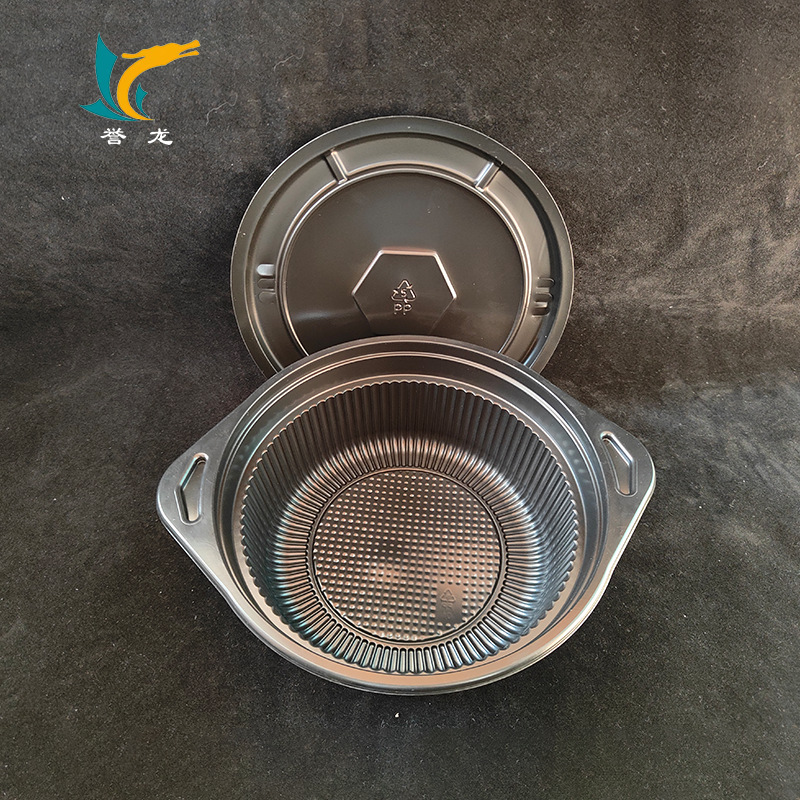 商用一次性黑色塑料碗带盖防漏打包盒食品水果酒席户外餐碗批发