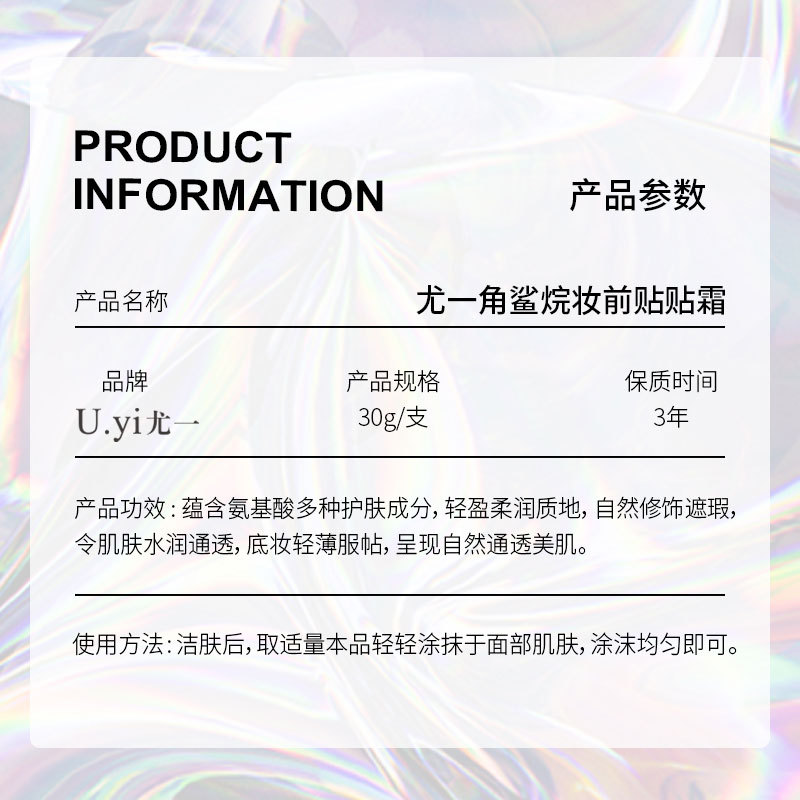 尤一角鲨烷妆前贴贴霜不脱妆隐形毛孔妆前贴贴乳妆前隔离霜批发